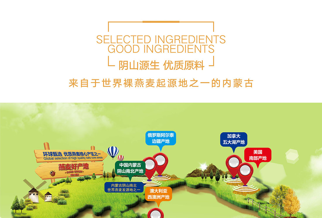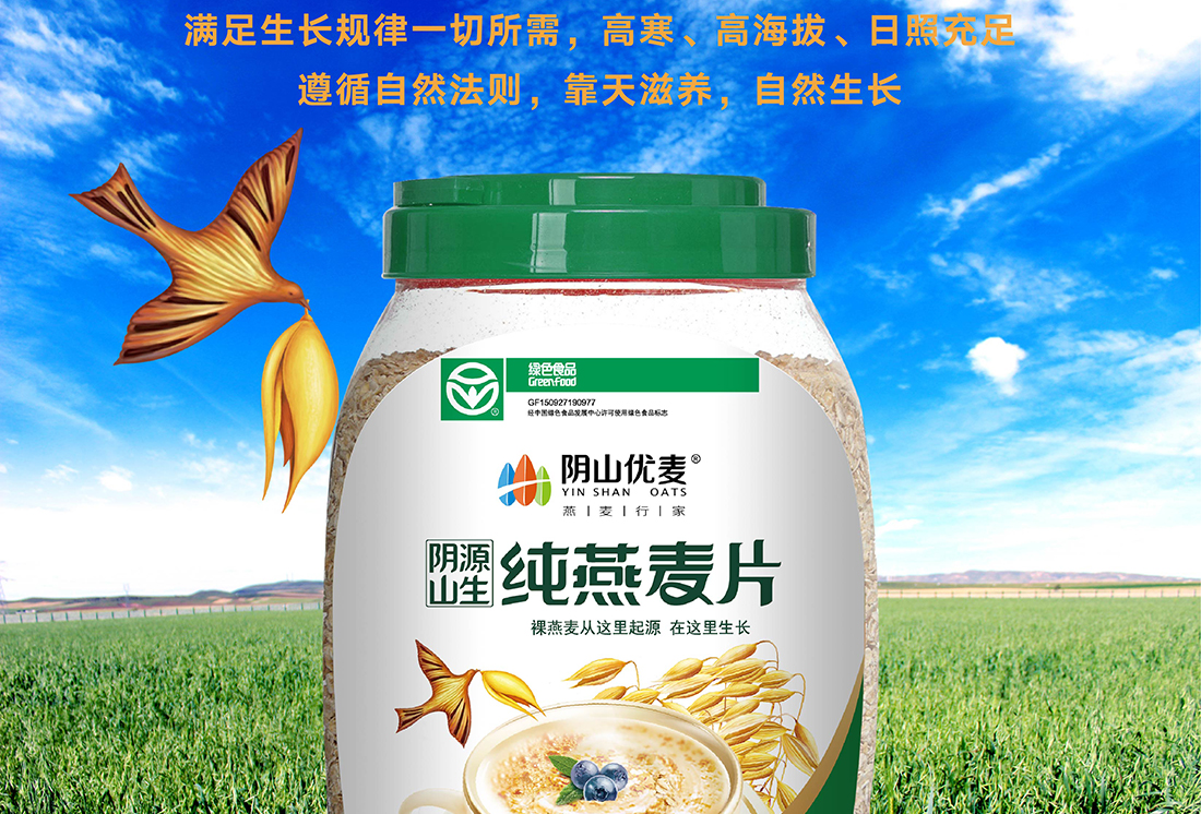 內蒙古,世界裸燕麥起源地之一;陰山源生燕麥在此初生滿足生長規(guī)律一切所需,高寒、高海拔、日照充足;遵循自然法則,靠天滋養(yǎng),自然生長;
