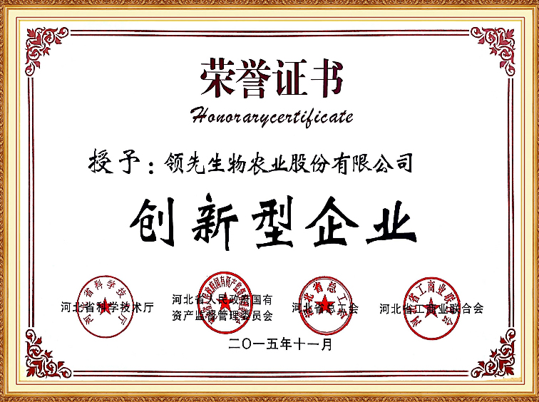 河北省農(nóng)業(yè)產(chǎn)業(yè)化重點龍頭企業(yè)證書