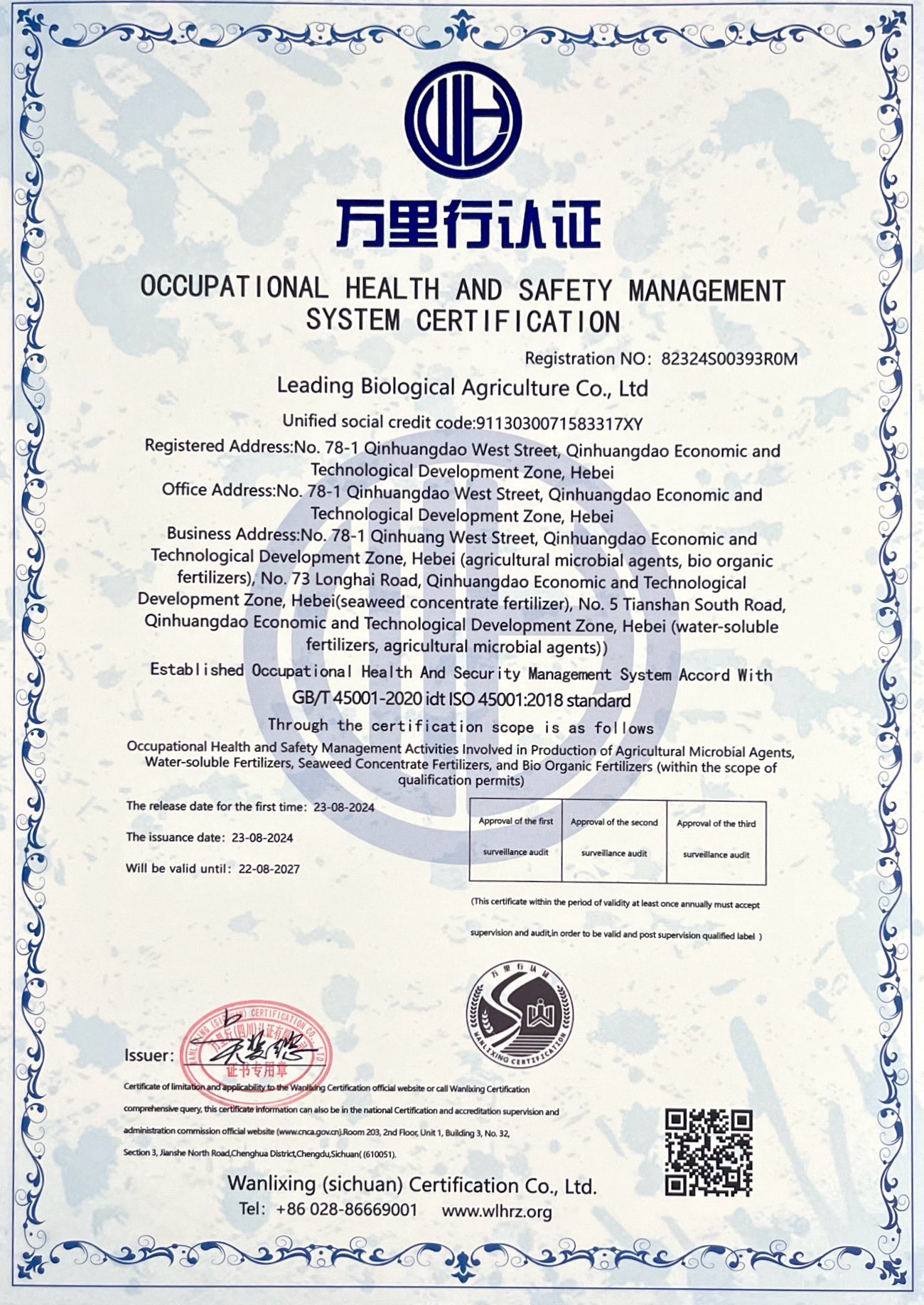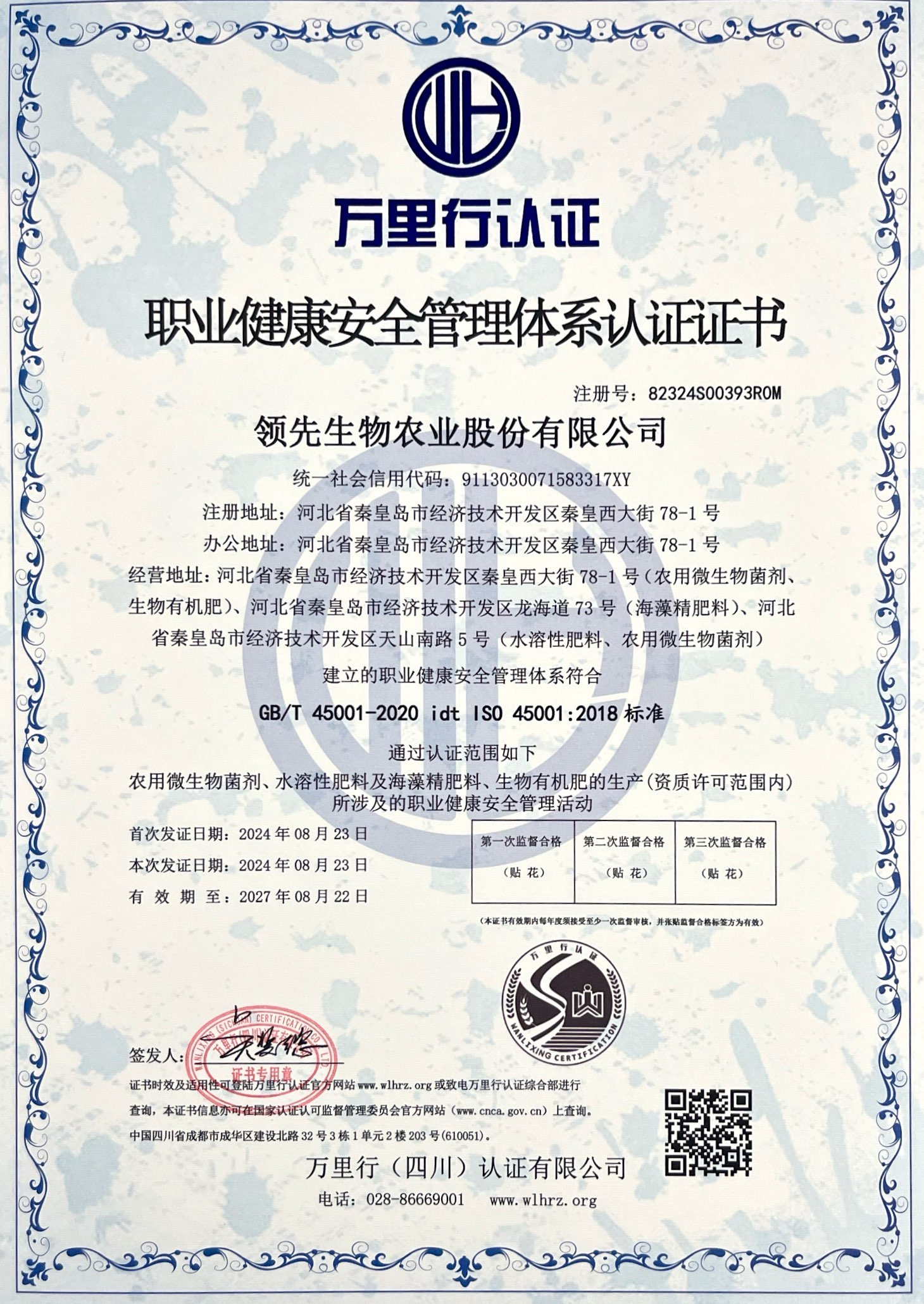 職業(yè)健康安全管理體系認(rèn)證證書