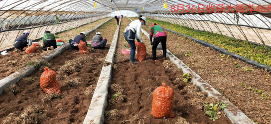 (通訊員 白靜)微型薯,5月播種,9月收獲。一般植株下部2/3葉片變黃,即表示微型薯已達到收獲期。此時,應停止水肥,促進微型薯表皮老化以減小收獲過程中的損傷。停水根據(jù)基質的干濕情況確定收獲日期,切勿基質太濕或太干收獲,太濕會導致微型薯收獲不干凈,太干會導致營養(yǎng)回流出現(xiàn)糖尾。