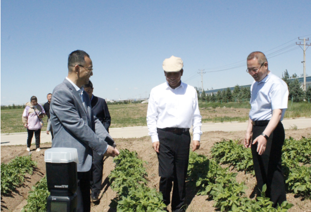在試驗(yàn)田前,冀福善向段志強(qiáng)一行介紹,公司為科學(xué)種植,合理輪茬,從2015年開(kāi)始進(jìn)入燕麥產(chǎn)業(yè),實(shí)施“馬鈴薯+燕麥”雙輪驅(qū)動(dòng)發(fā)展戰(zhàn)略,在察右中旗成立子公司——內(nèi)蒙古陰山優(yōu)麥?zhǔn)称酚邢薰?。目前,陰山?yōu)麥已完成投資2.4億元,年產(chǎn)2萬(wàn)噸燕麥香米、2萬(wàn)噸燕麥片、2000萬(wàn)支燕麥杯、6000噸燕麥粉(莜面)和2萬(wàn)噸藜麥米加工生產(chǎn)線已建成并投入使用,陰山優(yōu)麥?zhǔn)恰白灾螀^(qū)農(nóng)業(yè)產(chǎn)業(yè)化重點(diǎn)龍頭企業(yè)”、“自治區(qū)扶貧龍頭企業(yè)”。同時(shí),公司依托自身在加工薯種植管理技術(shù)、產(chǎn)品質(zhì)量、倉(cāng)儲(chǔ)能力等方面的優(yōu)勢(shì),于2019年初在察右中旗成立子公司——內(nèi)蒙古蒙薯食品科技有限公司,計(jì)劃投資1.5億元,建設(shè)“年產(chǎn)8000噸低溫油炸薯?xiàng)l及2000噸果蔬脆片加工項(xiàng)目”,全力打造烏蘭察布市地標(biāo)性產(chǎn)品,創(chuàng)建全國(guó)大的低溫油炸薯?xiàng)l、果蔬脆片深加工企業(yè),已于今年投產(chǎn)。