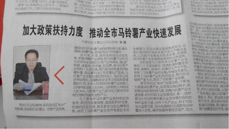 張國表示,民豐薯業(yè)將堅(jiān)定貫徹總書記講話精神,落實(shí)自治區(qū)“8337”發(fā)展戰(zhàn)略,充分發(fā)揮龍頭企業(yè)帶動(dòng)、幫扶作用,為推動(dòng)我市馬鈴薯產(chǎn)業(yè)快速發(fā)展做出新貢獻(xiàn)。