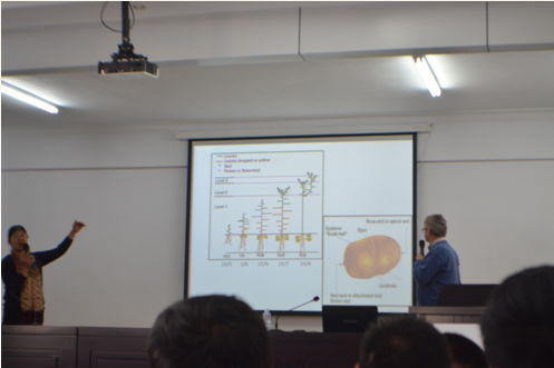 培訓會上,Harrie先生對馬鈴薯規(guī)范化種植管理的重要意義進行了深刻闡述,并就馬鈴薯各生長周期內易發(fā)、頻發(fā)的病蟲害及其防治措施與馬鈴薯種植、生產全程現代化管理等內容進行了講解,理論聯(lián)系實際,內容詳實全面,得到了參訓學員的廣泛認可。培訓全程為英語授課,為了使參訓學員能夠真正聽得懂、學得會,公司特聘內蒙古農業(yè)大學農學專業(yè)教授進行了全程翻譯。