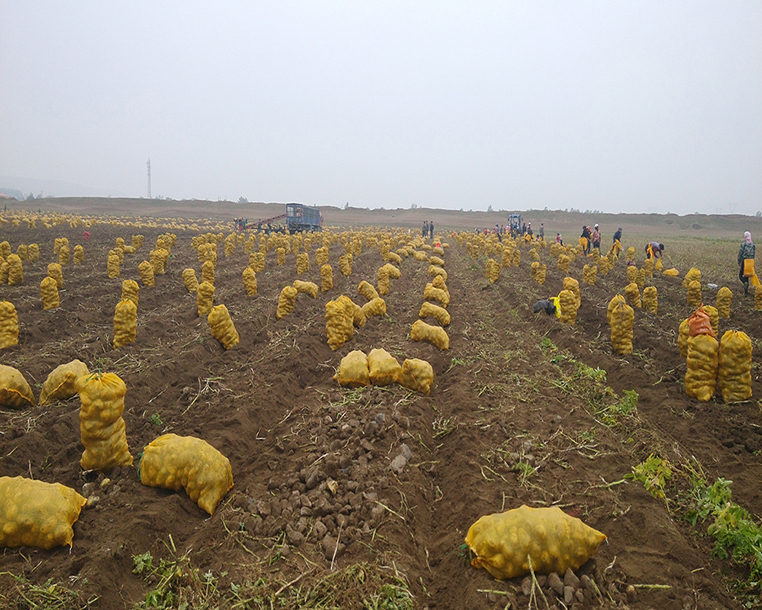 當(dāng)汽車漸近農(nóng)場時(shí),遠(yuǎn)遠(yuǎn)望去,視野被茫茫一片黃燦燦的景色鎖定?!澳蔷褪秦S收的馬鈴薯嗎?”大家的心情隨之激動(dòng)起來。車子繼續(xù)前行,一袋袋裝好的馬鈴薯展露在眼前,整齊有序,像昂首等待檢閱的士兵方陣,田間地頭充滿了收獲機(jī)的聲音和豐收的喜悅。